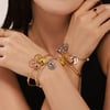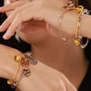 Elevate your accessory collection with this 18K Gold Bell Pendant Bracelet, designed with a playful yet refined aesthetic. Featuring two distinct bell elements, this piece combines visual intrigue and dynamic movement. The hollow round bell pattern offers a modern, structured appeal, while the three-dimensional bell sways gently with every motion, adding a soft, rhythmic charm. Crafted from a blend of 18K gold and durable titanium steel, the bracelet balances luxurious shine with long-lasting wear. Its adjustable design ensures a comfortable fit for various wrist sizes, making it both practical and stylish. Perfect for a range of occasions, this bracelet adds character and elegance to your ensemble without being overly flashy.