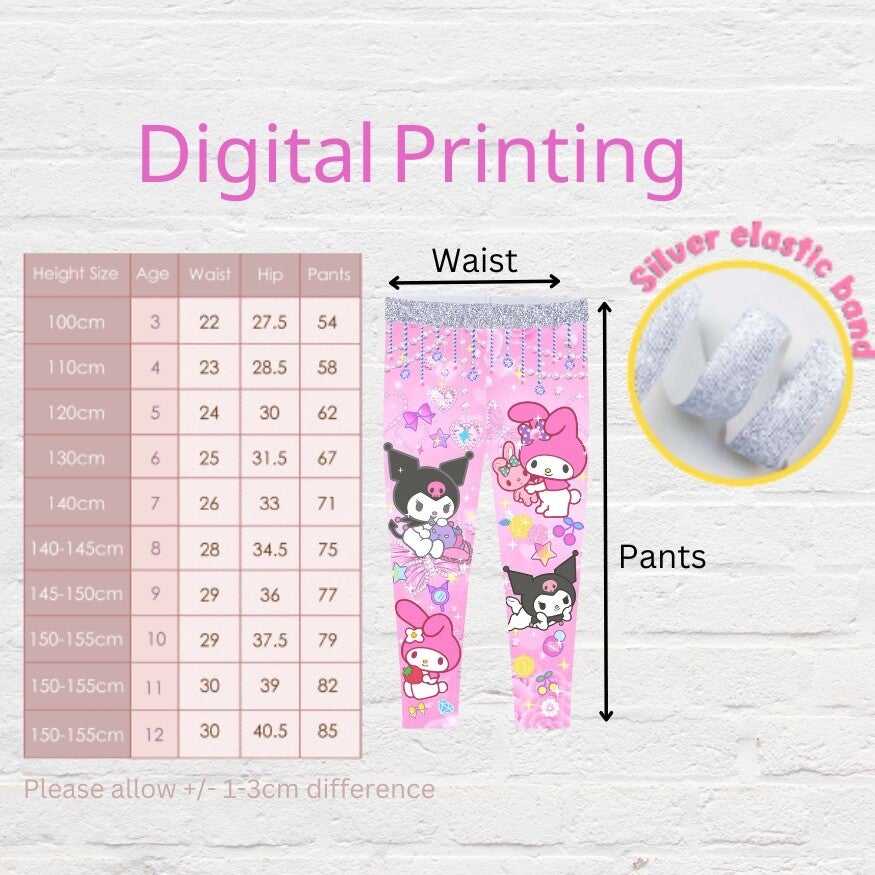 Add fun and flair to your little one's wardrobe with these adorable cartoon-inspired leggings, perfect for girls aged 3 to 12 years old. Designed with playful prints and a sparkly silver elastic waistband, these leggings offer both style and comfort for everyday wear, school, or casual outings.