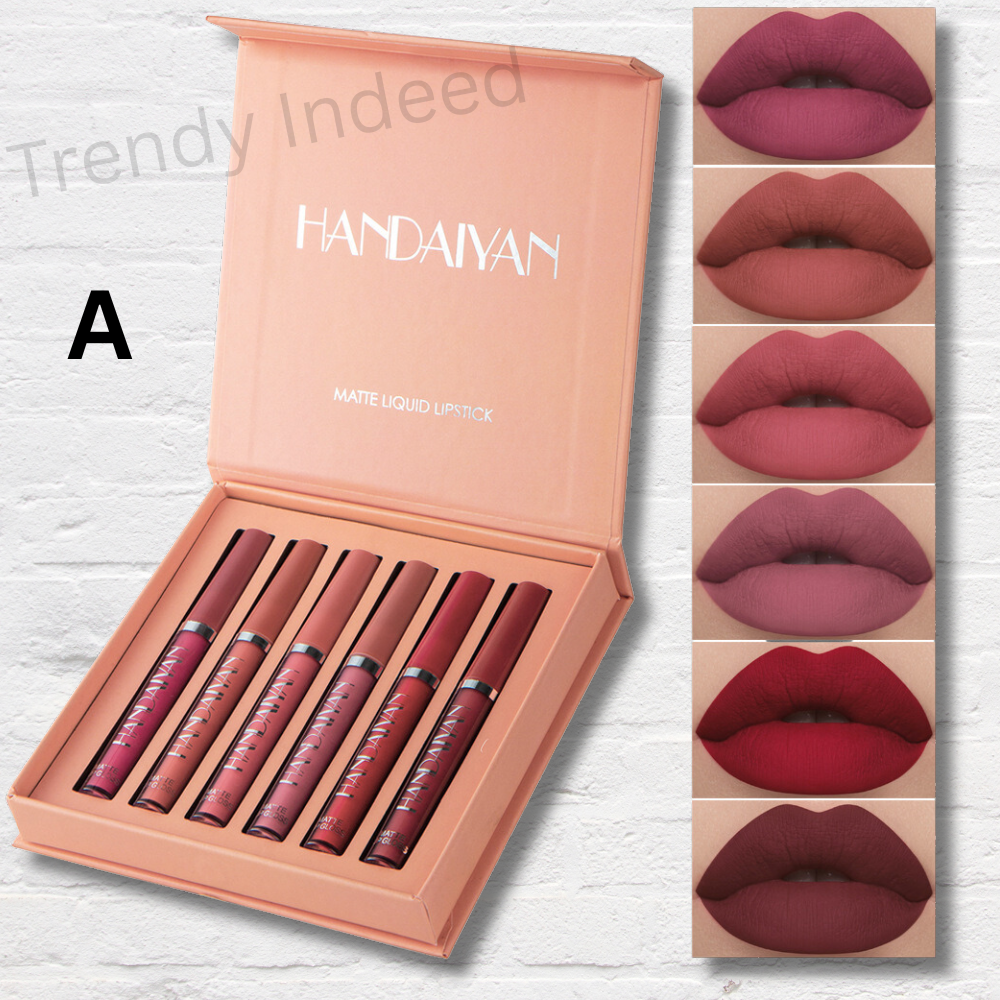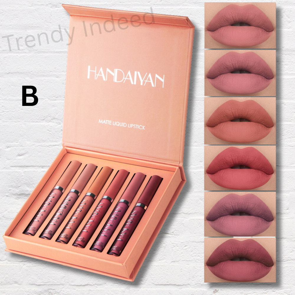 HANDAIYAN 6-Piece Genuine Non-Stick Liquid Lipstick Set: Waterproof Matte, Long-Lasting Lip Gloss & Glaze Collection