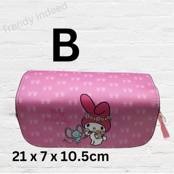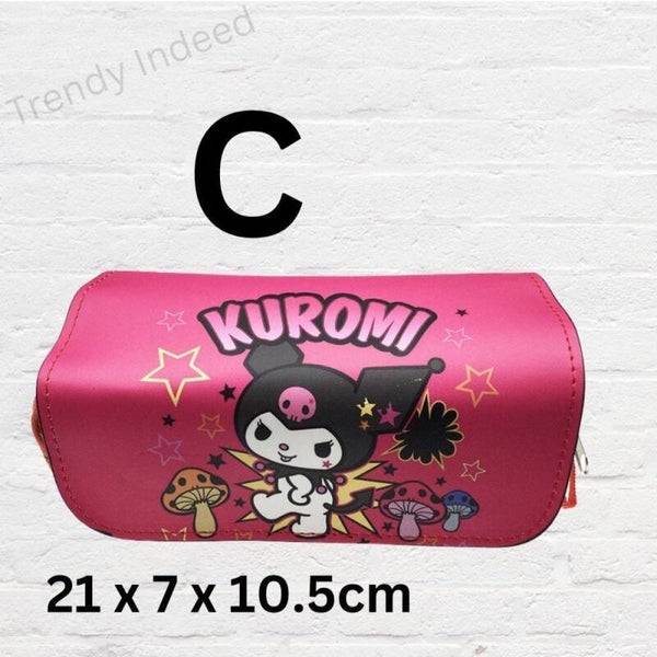 Add a dose of charm and functionality to your school or work essentials with our Sanrio-Inspired Pencil Case Collection, featuring character designs inspired by Kuromi, Hello Kitty, and My Melody. Designed with a double zipper for easy access and secure closure, this pencil case is perfect for organizing your writing tools in one adorable accessory.