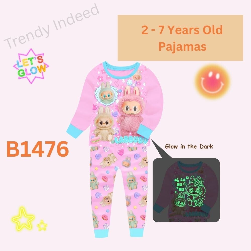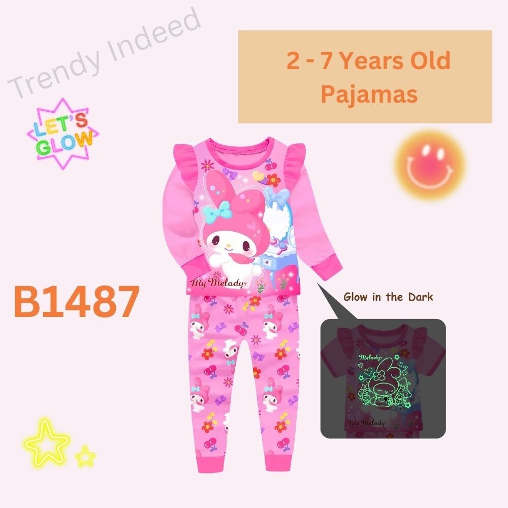 Glow-in-the-Dark Cartoon-Inspired Pajamas Set for Kids (Labubu & My Melody) – 2 to 7 Years