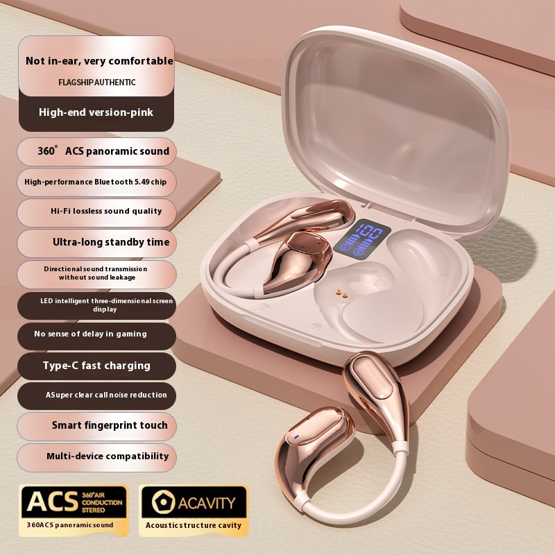 The Ear-Mounted Bluetooth Headset delivers a high-quality audio experience with noise reduction technology, ensuring clear calls and immersive sound. Designed for comfort and convenience, this open-ear wireless headset provides a secure fit, making it ideal for daily use. With an extended battery life of over 8 hours, it supports all-day connectivity. The digital display screen provides real-time battery status, while the 10-meter transmission range ensures stable wireless performance.