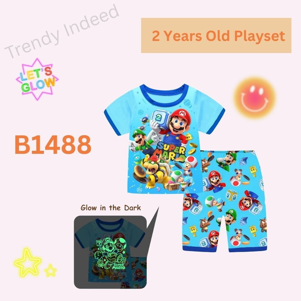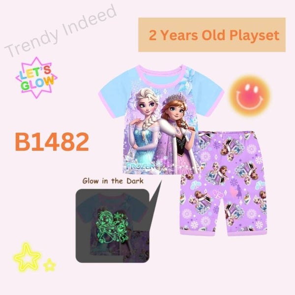 2-Year-Old Glow-in-the-Dark Pajama Playset – Inspired by Frozen, Kuromi, Twins (Upin & Ipin) , Spider (Man) , Mouse (Sonic) & Brothers (Mario)