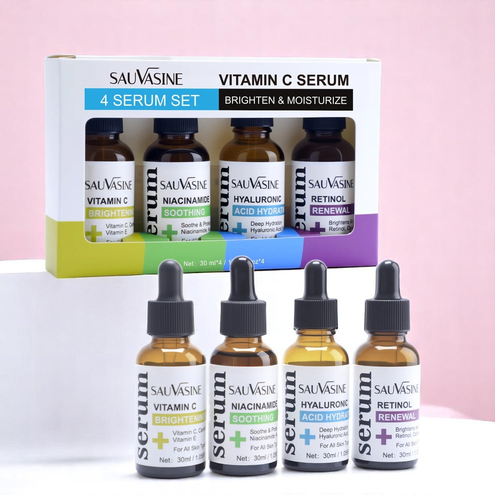 SAUVASINE 4-in-1 Facial Serum Set | Brightening, Soothing, Hydrating, Renewal