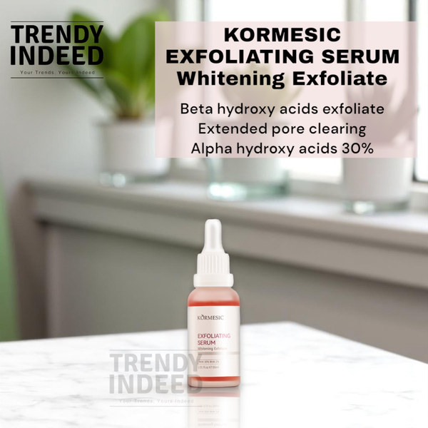 Transform your skin with Kormesic Exfoliating Serum, a powerful at-home peel featuring a potent blend of 30% Alpha Hydroxy Acids (AHAs) and 2% Beta Hydroxy Acids (BHAs). This advanced formula delivers superior anti-aging exfoliation by gently removing dead skin cells, refining acne scars, minimizing pore size, and brightening dull complexion for a youthful, glowing skin.