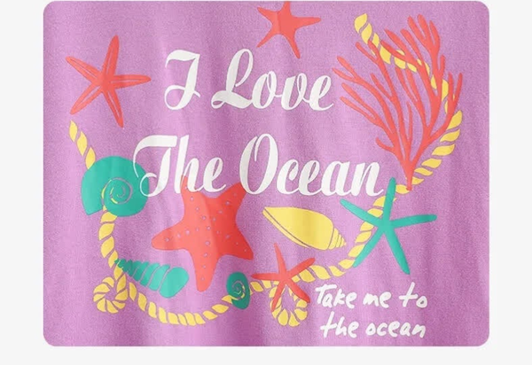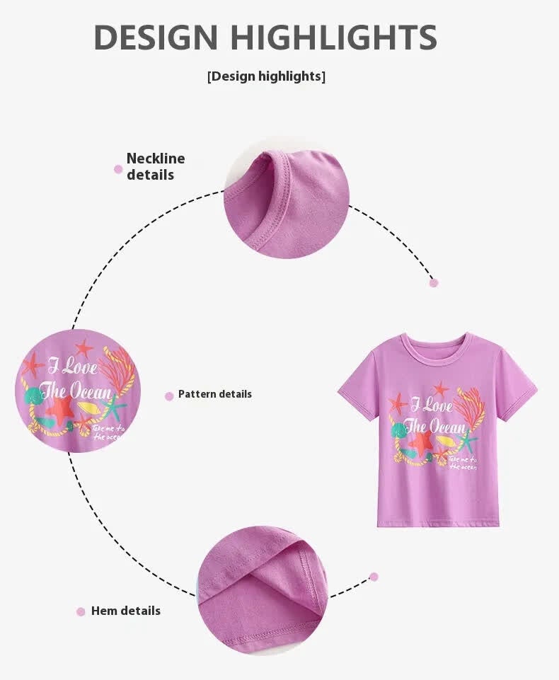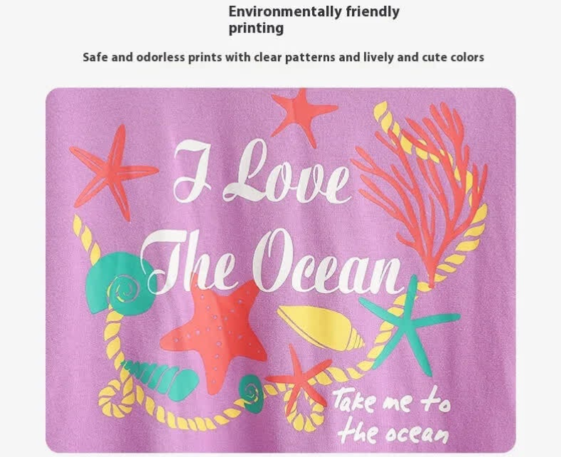 Let your little girl enjoy summer in style with our Pure Cotton Short Sleeve T-Shirt featuring a fun "I Love the Ocean" cartoon print. Made from 100% breathable cotton, this tee offers excellent moisture absorption and perspiration control, perfect for active summer days.