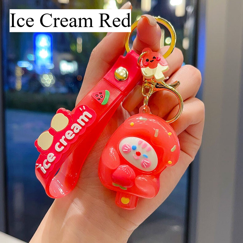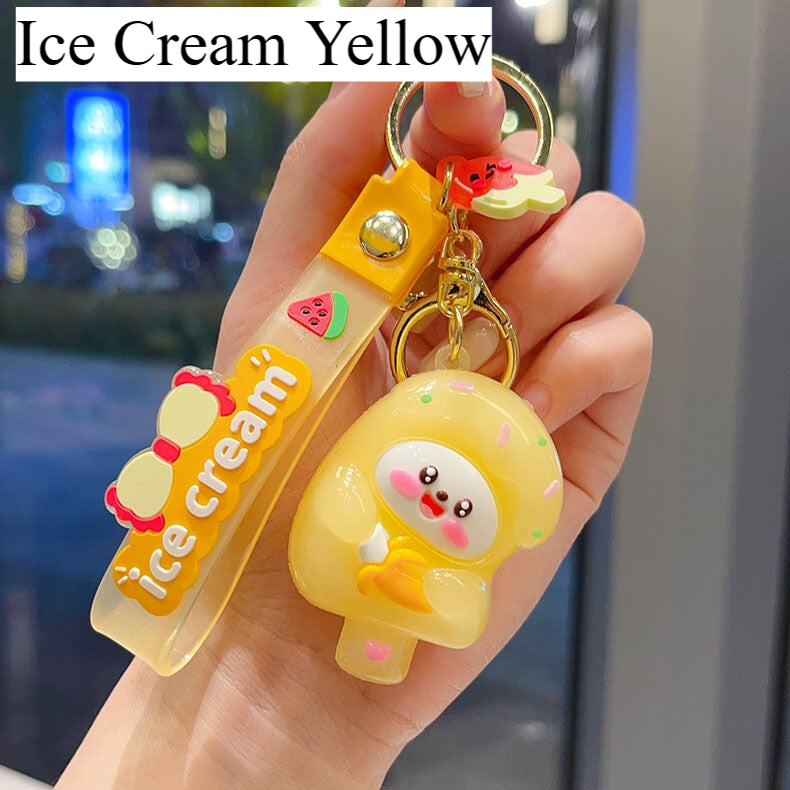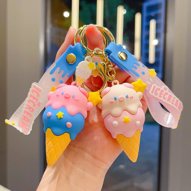 Add charm and color to your accessories with this fun collection of cartoon-inspired keychains. Designed with vibrant colors and soft PVC material, these keychains feature adorable characters including ice cream animals, capybaras, and playful snack-themed designs.