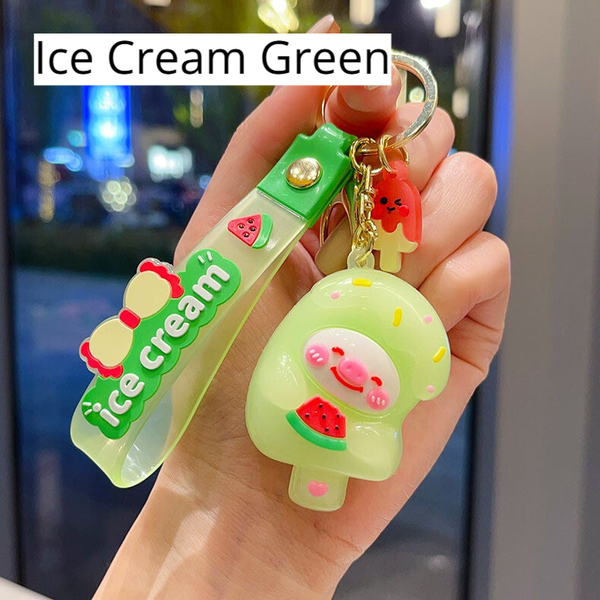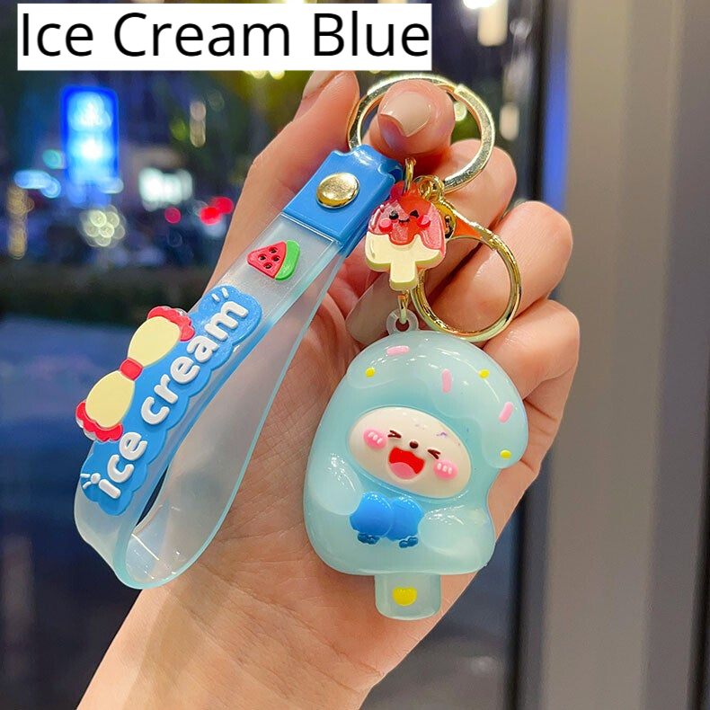 Cute Cartoon-Inspired Keychain Set – Sanrio-Inspired Snacks, Light-Up Capybara, Ice Cream Pig, and Soft Treat Charms (Single or Bundle of 3)