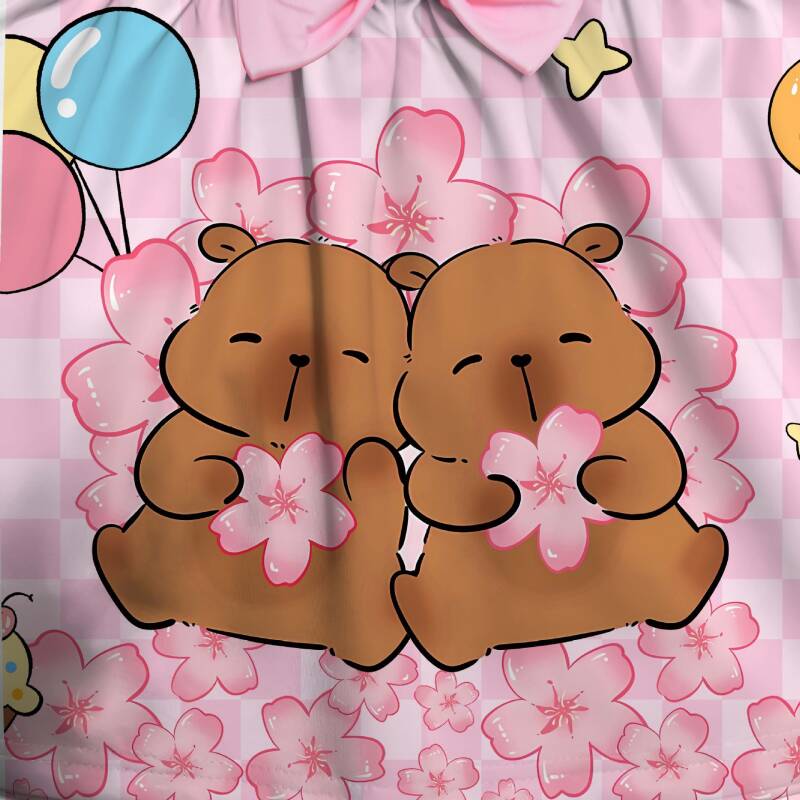 Unique and Eye-Catching – Adorned with charming capybara prints, balloons, cupcakes, and blossoms, paired with a statement bow that highlights a true princess look.