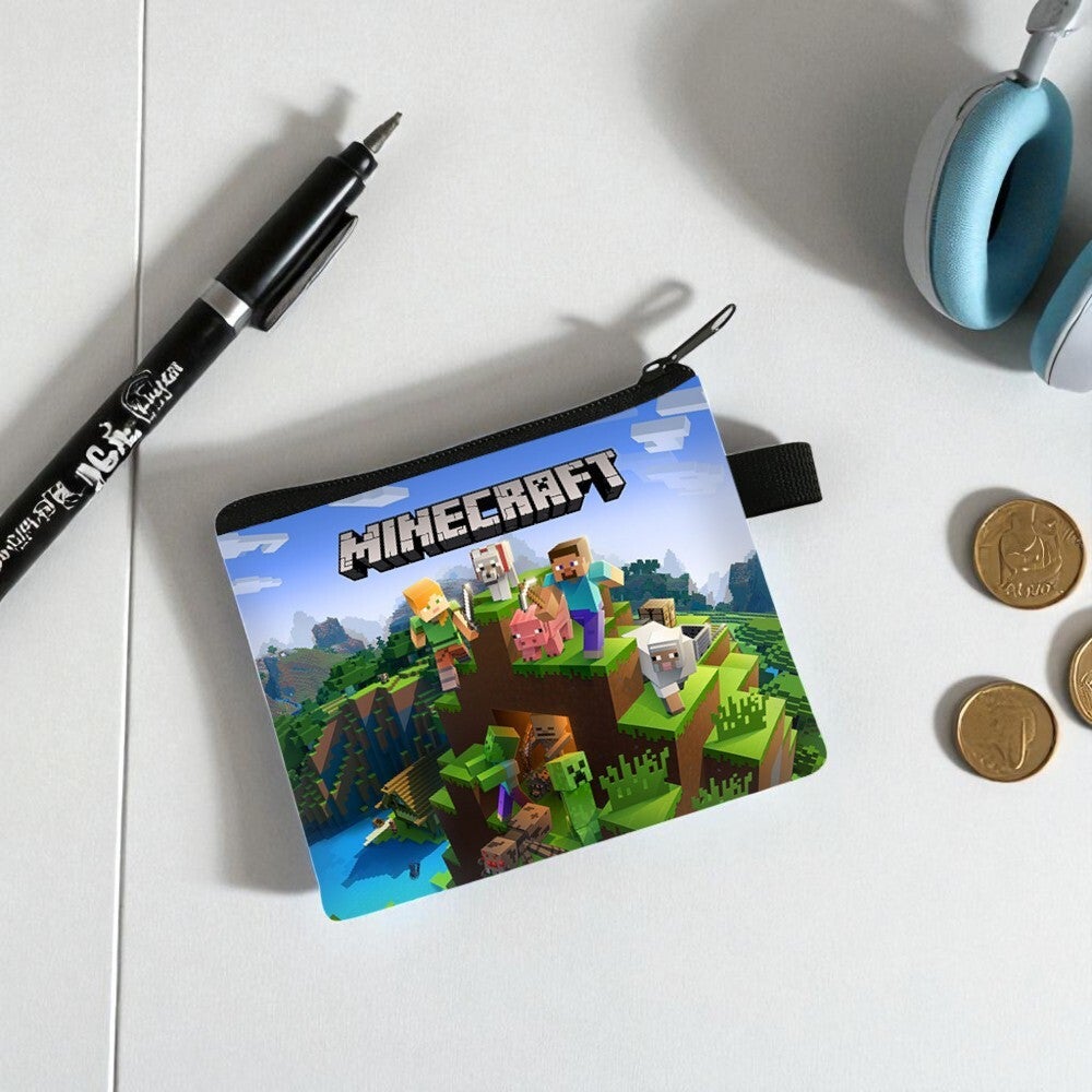 Pixel World Kids Wallet | Minecraft-Inspired Coin Pouch | Zipper Card & Coin Holder for School Use