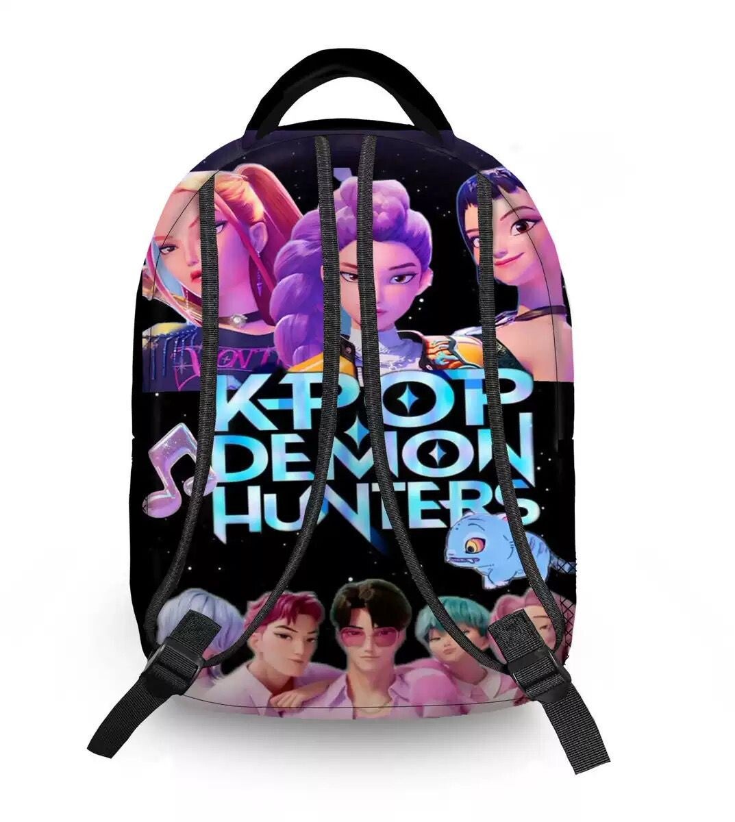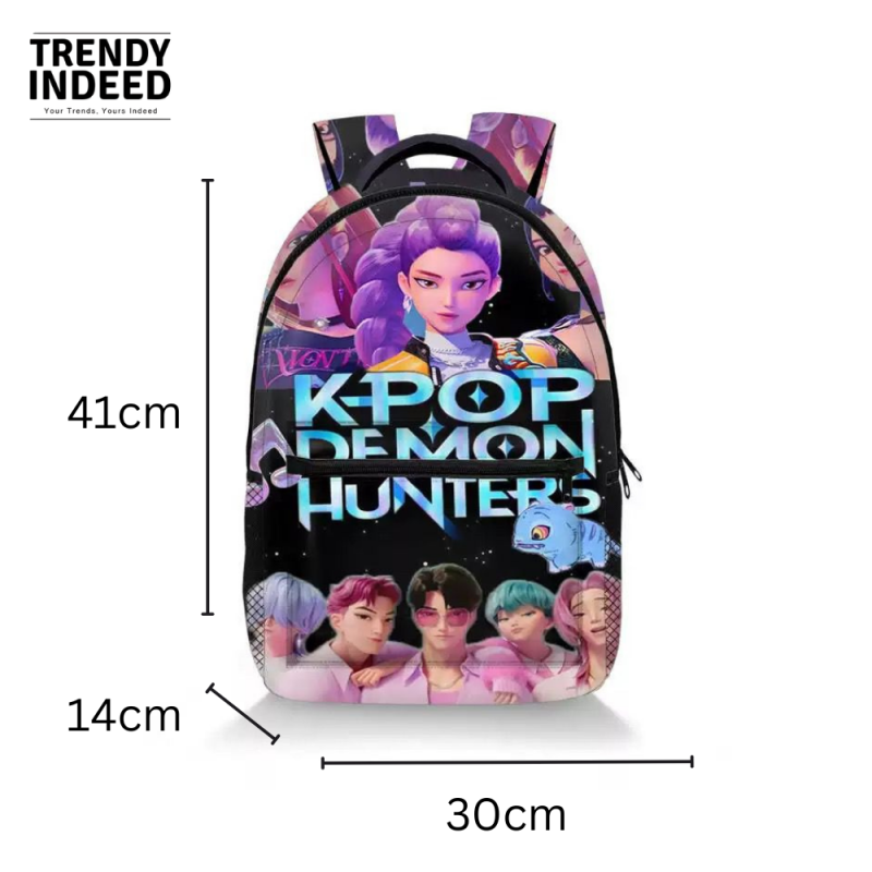 This K-Pop Demon Hunter-Inspired Backpack features a bold cartoon design with a modern K-style aesthetic, making it a standout choice for students who enjoy expressive and trendy looks. Designed for everyday school use and casual outings, it blends eye-catching visuals with practical functionality.